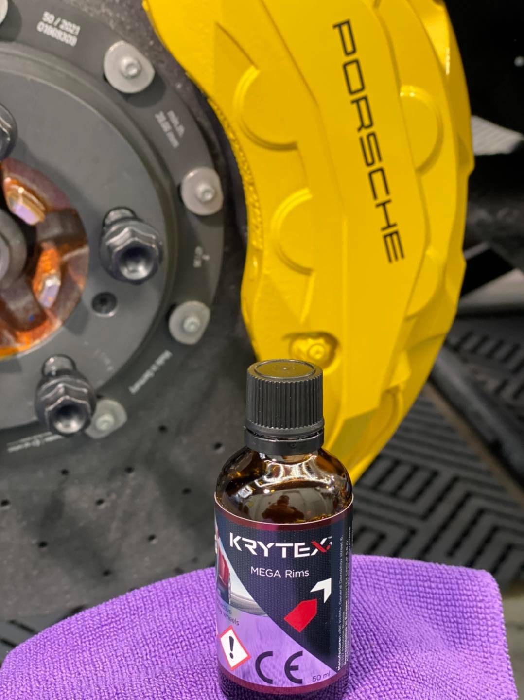 Après un polissage de finition pour corriger quelques défauts minimalistes nous avons utilisé le combo Krytex 9/9/8 sur la carrosserie en 3 couches , Mega Rims pour les jantes et étriers ainsi que Mega glass pour les vitres .