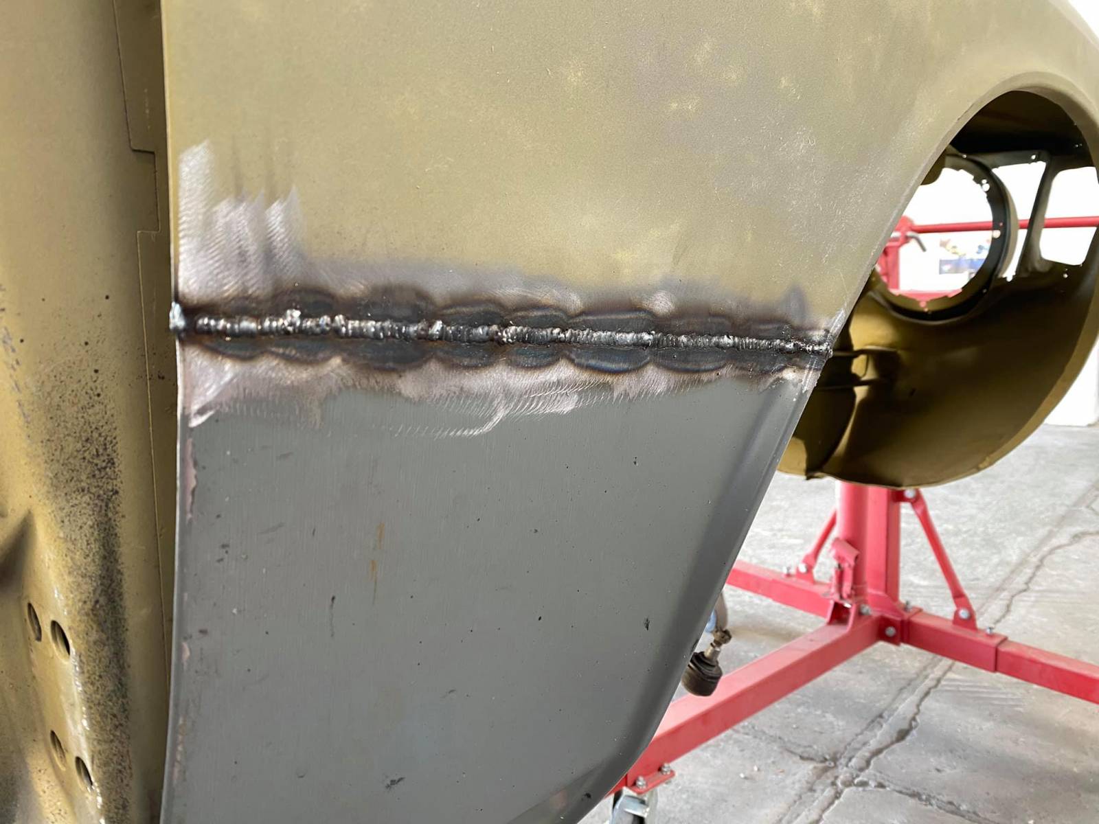 Au cours de ces dernières semaines nous nous sommes mis sur le remplacement de plusieurs éléments soudés pour la rénovation de carrosserie de cette voiture ancienne de collection (bas de caisse droit , plancher habitacle , bas d’aile avant et bas d’aile arrière , plancher de coffre).
