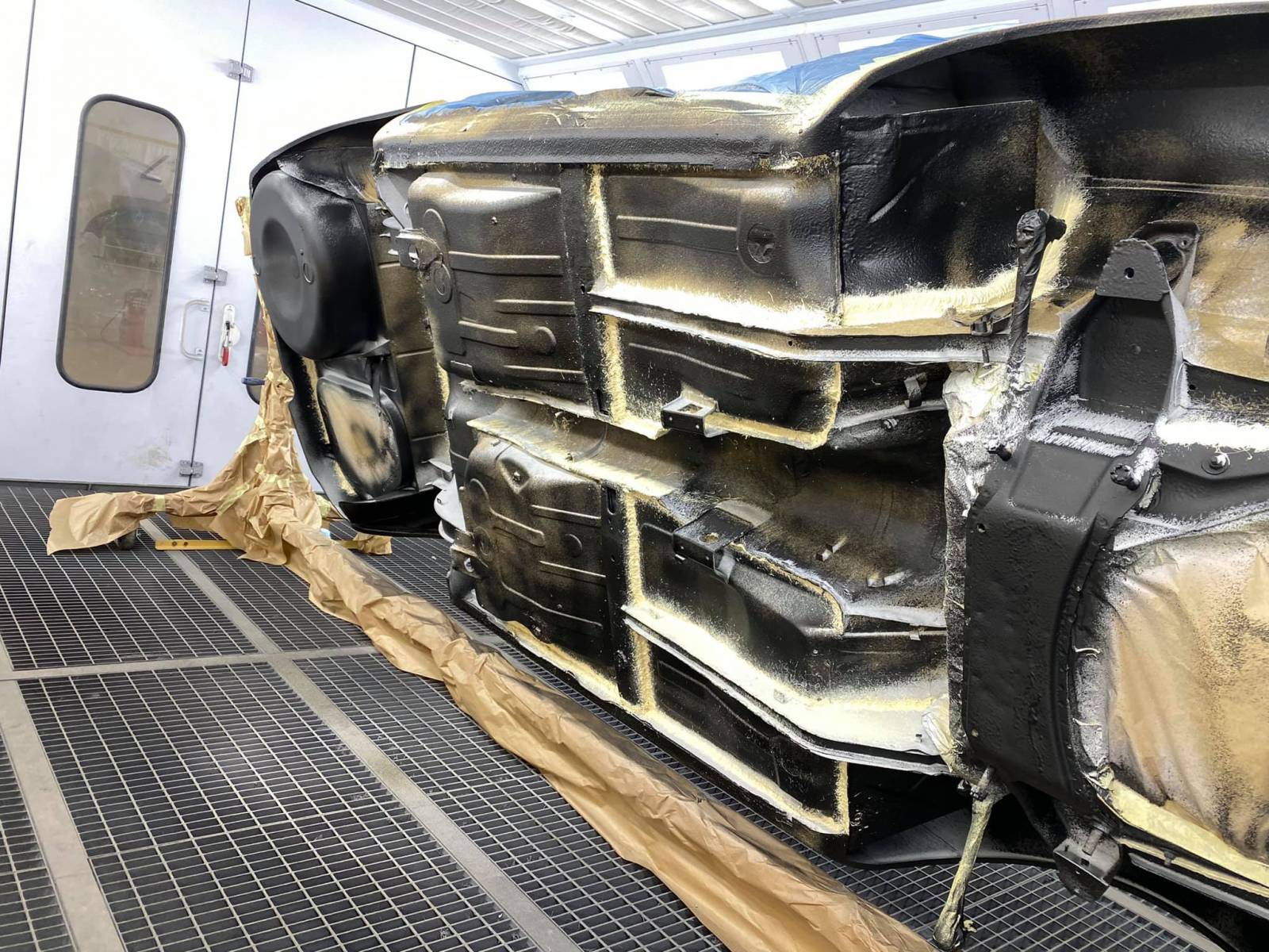 La mise en peinture du dessous de caisse ainsi que l’application des joints d’étanchéité polyuréthane et de la protection anti gravillon.