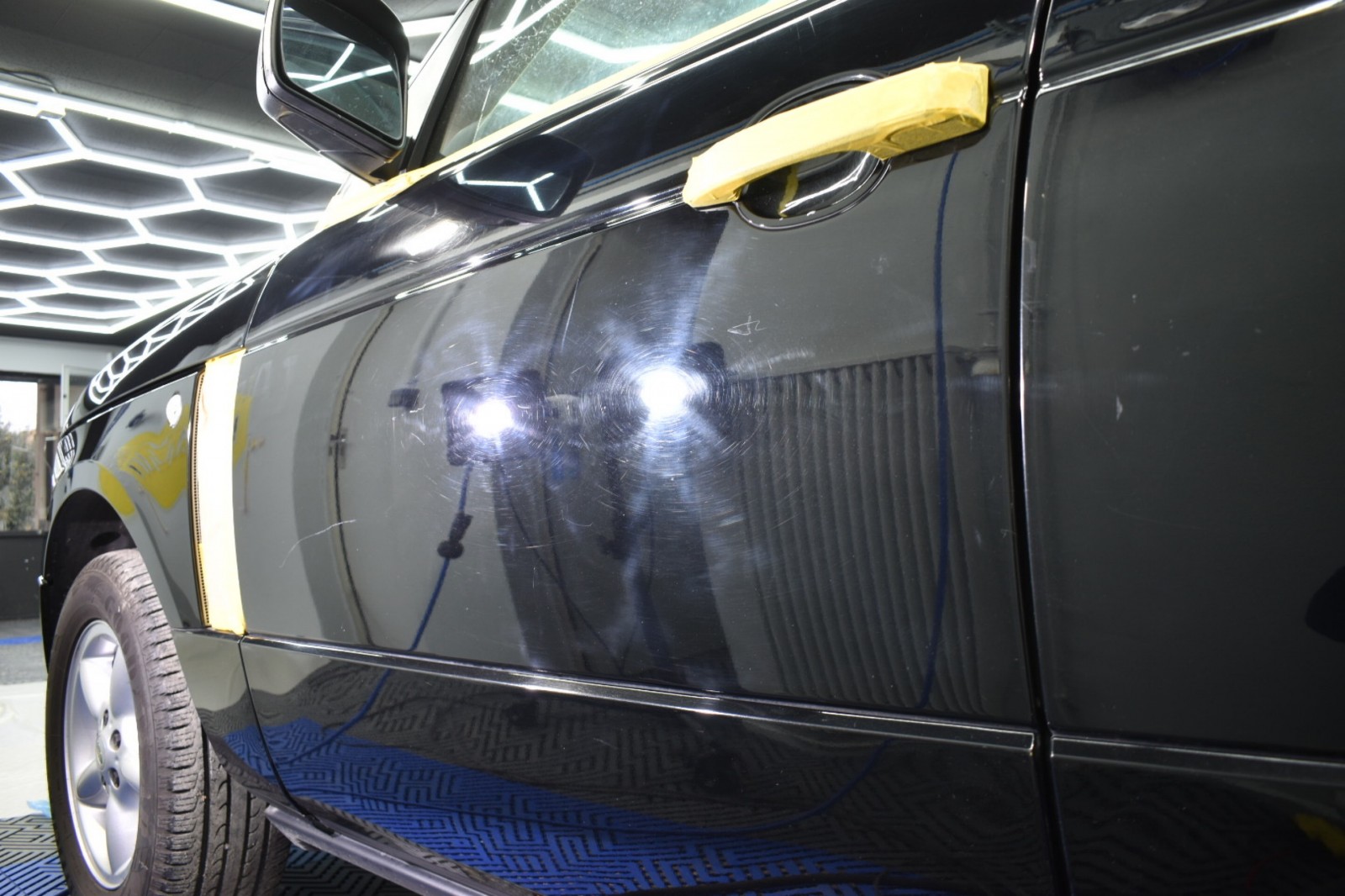 Énormément de défauts profond certainement dû a un vernis extrêmement soft et de mauvaises techniques de lavage qui auront fortement marqué cette peinture ayant quasiment 15 ans .